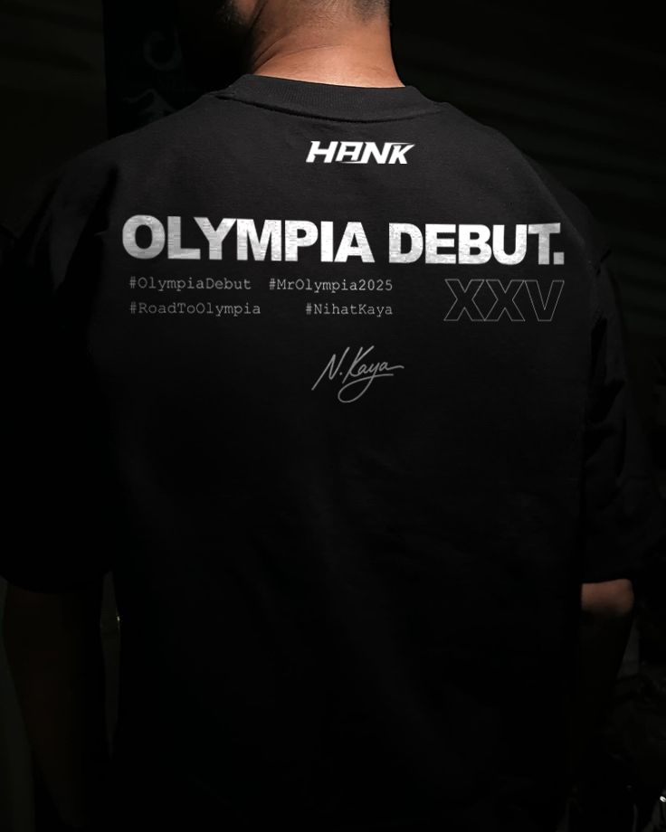 Her koleksiyonun bir hikâyesi vardır. Bu tişört, yalnızca bir giyim ürünü değil; sahneye giden yolun, disiplinin ve emekle örülmüş bir yolculuğun simgesidir. HANK olarak ilk kez Mr. Olympia sahnesinde yer alıyoruz ve bu özel anı sizinle paylaşmak istedik.